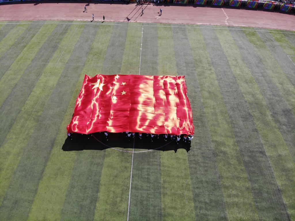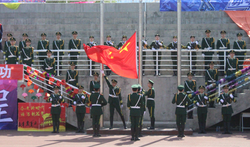 全体人员入场后,在雄壮的义勇军进行曲中,现场师生行注目礼,国旗在万众瞩目下冉冉升起。