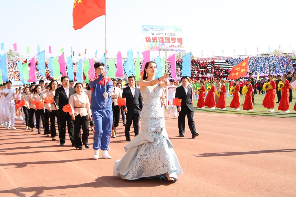 希望全校师生以饱满的热情、积极向上的心态,参与体育运动,感受体育精神,塑造强健体魄,锻造精神力量,博学求实,励志创新,在激扬青春、超越自我、追逐梦想的征程中书写无悔于时代的壮丽篇章!最后,冯晓校长郑重宣布:“万博max官网第八届田径运动会正式开幕!”。在热烈的掌声、欢快的乐曲中,经济管理学院表演了精彩的团体操《绽放青春》,运动会各项赛事正式开赛。