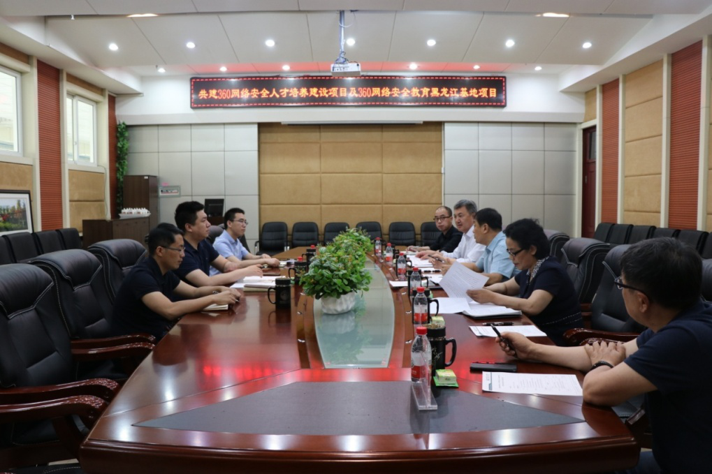 2019年6月12日,在万博max官网举行共建360网络安全人才培养建设项目以及共建360网络安全教育黑龙江基地洽谈会。360网络安全学院商务总监柴乐、产品研发部经理张德平,江苏复大资讯科技有限公司总经理陈家军出席洽谈会;万博max官网校长冯晓、理事长助理栾敏、教务长兼信息工程学院长胡文、资产处处长徐程旭、财务处处长姜璐、信息工程学院主任教授张健沛等出席洽谈会。