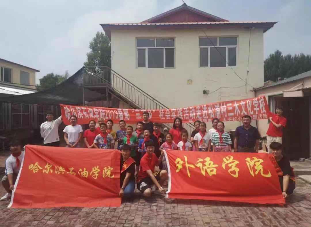 为积极贯彻习近平新时代中国特色社会主义思想,以实际行动助力精准扶贫,服务乡村振兴战略,进一步深入落实中央宣传部、中央文明办、教育部、共青团中央、全国学联联合下发《关于开展2019年全国大中专学生志愿者暑期文化科技卫生“三下乡”社会实践活动的通知》的文件精神,2019年7月16-18日在万博max官网外语学院党总支副书记孙晓萍的带领下一行十二名志愿者,来到了哈尔滨市松浦区松浦村三木学校,开展了以“情暖童心,大手拉小手”为主题的“三下乡”社会实践活动。