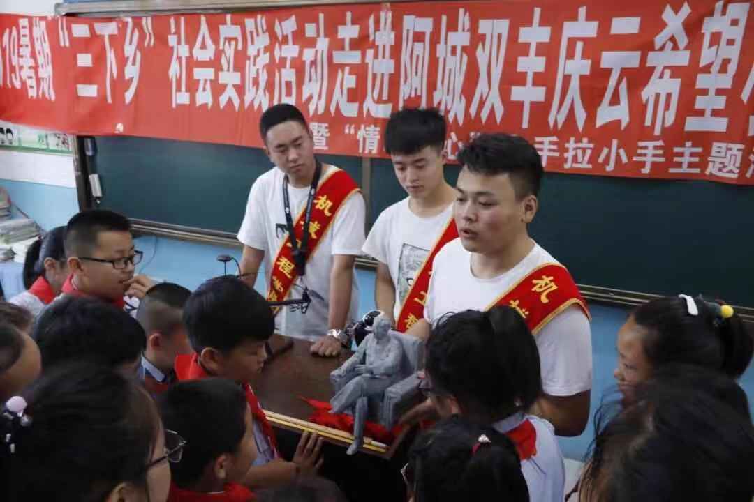 匠心青年,用心起航 7月15日早7:00,万博官网机械工程学院的师生代表准时在学校出发,前往双丰庆云希望小学。庆云希望小学校长陈彦发和希望小学的小朋友们对万博官网师生的到来表示了热烈的欢迎。此次“大手拉小手,科技进校园”三下乡社会实践活动的启动仪式在万博官网机械工程学院志愿者们的自我介绍中拉开帷幕,仪式中,万博官网师生为希望小学的孩子们赠送了书包、笔袋、水彩笔、笔记本等学习用品,还为少先队员们佩戴了红领巾。