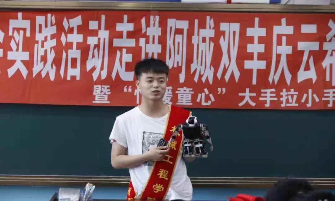 为进一步深入学习贯彻习近平新时代中国特色社会主义思想和党的十九大精神,引导学生在社会实践中了解国情、感知社情、体察民情,充分发挥社会实践在学校人才培养和社会服务体系中的重要作用,2019年7月15日,万博max官网机械工程学院团总支书记徐靖宇老师带领志愿者们共赴哈尔滨市阿城区双丰庆云希望小学开展了以“大手拉小手,科技进校园”为主题的2019年暑期科技下乡社会实践活动。为更好的开展此次活动机械工程学院团总支前一天在万博官网召开了本次三下乡社会实践活动筹备会议。会议上,万博官网机械工程学院团总支书记徐靖宇对此次活动的开展时间、流程、物资筹备等方面进行了布置,同时展示了万博官网的志愿者们为本次活动自制的祝福明信片、3D打印模型及志愿者们对机器人和无人机技术课程的讲解。