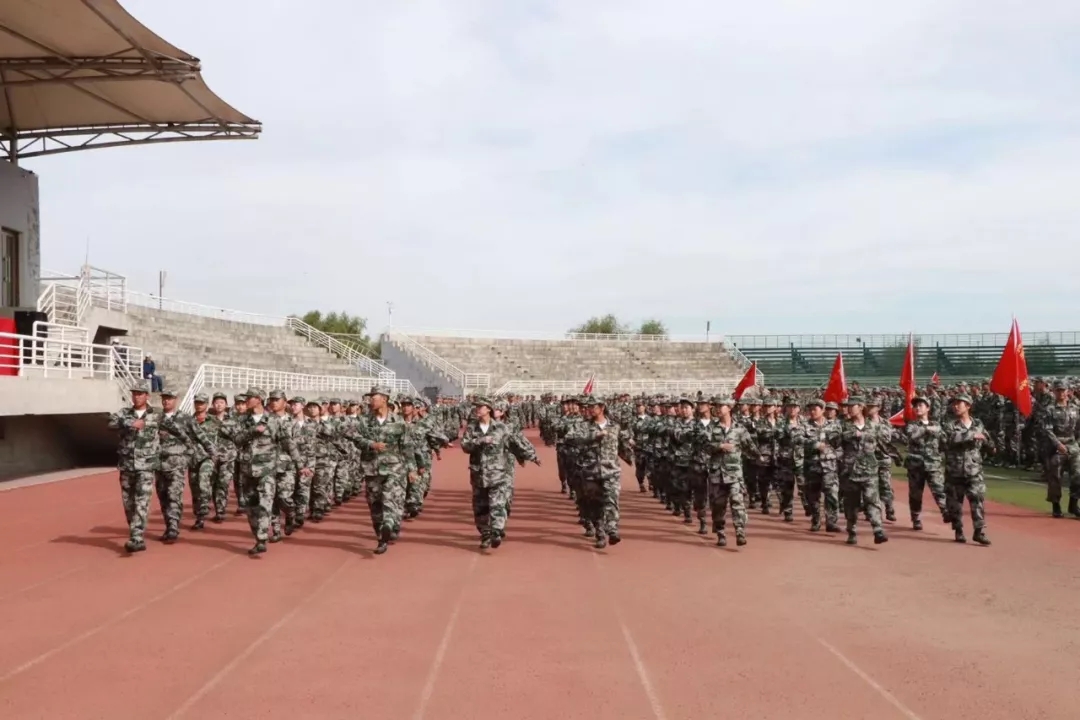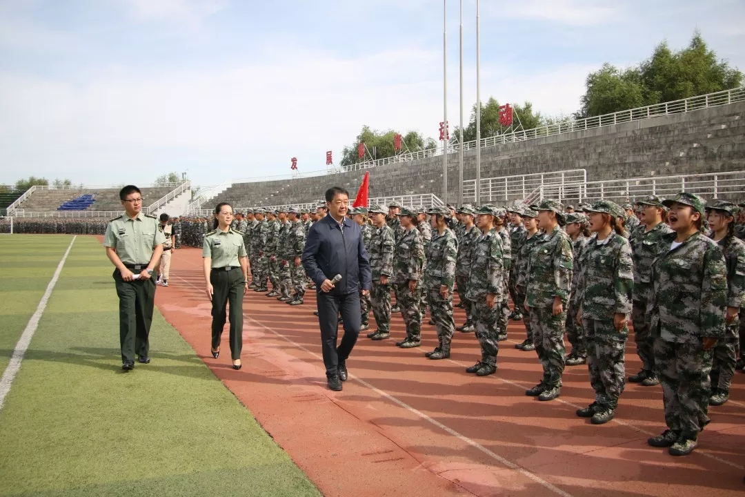 军训团团长、校长冯晓对各营新生方队进行检阅。向参训同学表示亲切问候,并向参训教官致以崇高敬意。
