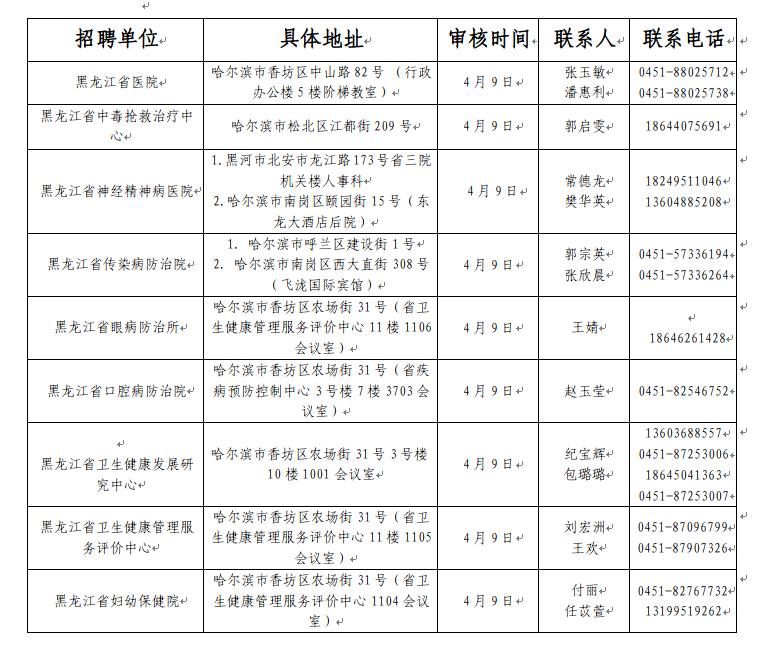 政策咨询电话:0451-85971115 (黑龙江省卫生健康委员会事业单位公开招聘工作领导小组办公室)