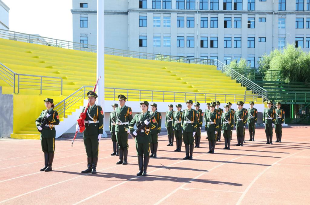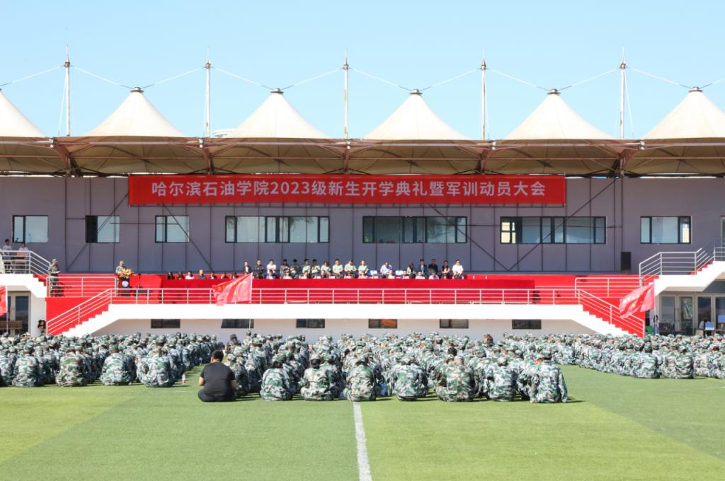 校长柴维斯发表讲话。她首先代表学校党政领导及全校师生员工向全体2023级新同学表示热烈的欢迎,向全体教官表示衷心的感谢!柴校长对新生提出三点希望与嘱托:一是要志存高远。她希望全体新生把个人成长融入谱写新时代发展之中,把理想信念融入实现中华民族伟大复兴事业之中,与时代同步伐、与祖国共命运、与人民齐奋斗,才能成就一番事业,更好地实现人生价值。二是要博学笃行。她希望大家走进生活,走进实践,将“有字之书”和“无字之书”结合起来,在博万物中广其识,在涉世道中明其理,更好地汲取智慧、丰富思想、淬炼精神,成为“胸中有丘壑,眼里存山河”的新时代青年。三要强健体魄。她希望大家从碎片化信息中抽身,从长时间游戏中抽离,去享受阳光的灿烂,去享受汗水的挥洒,在参与体育运动的过程中,增强体质、健全人格、锤炼意志,成长为国家栋梁之才。她最后寄语新生不负韶华、奋发向上,遵循学校“博学求实、励志创新”的校训,光大“承大庆精神立德,以铁人榜样树人”的校风。做一个爱国奉献的哈油人、一个砥砺奋进的哈油人,一个追求卓越的哈油人,不断超越自我,在哈石油书写无愧于时代、无愧于国家、无愧于人民、无愧于自己、无愧于未来的靓丽青春,成就精彩的人生。
