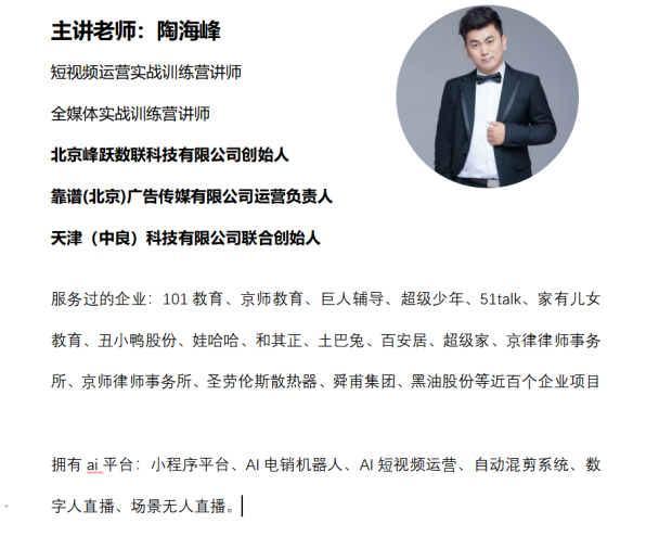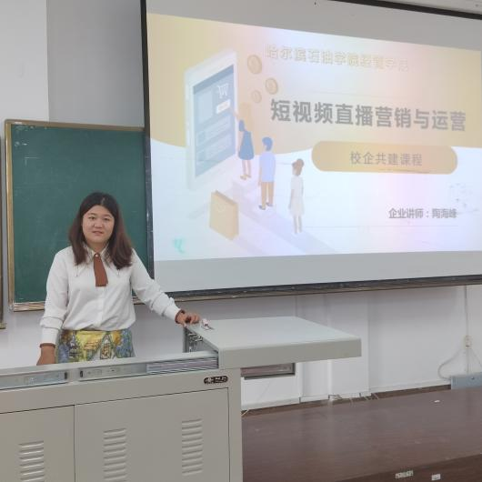 为顺应数字经济发展新趋势,满足社会对新媒体运营人才的需求,以服务地方经济发展,促进学生就业为宗旨,积极探索校企合作模式,在2022-2023学年校企共建课实施项目化教学的基础上,我院再次联合北京忠魁互联网技术有限公司精心打造校企共建课程——《短视频直播营销与运营》,并于9月13日举行开课仪式,北京峰跃数联科技有限公司创始人陶海峰为我院2021级市场营销专业学生进行线上讲座。