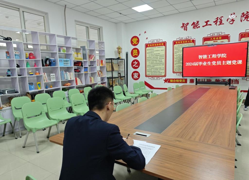 为加强毕业生党员的思想教育,倾听毕业生党员心声,同时教育引导广大毕业生党员牢固增强“四个意识”、坚定“四个自信”、做到“两个维护”,根据《关于做好万博max官网2024 届毕业生党员主题教育及毕业管理服务工作的通知》,2024年6月3日,智能工程学院开展2024届毕业生党员主题党课。本次党课由学生党支部书记迟航主讲,全体毕业生党员参加。