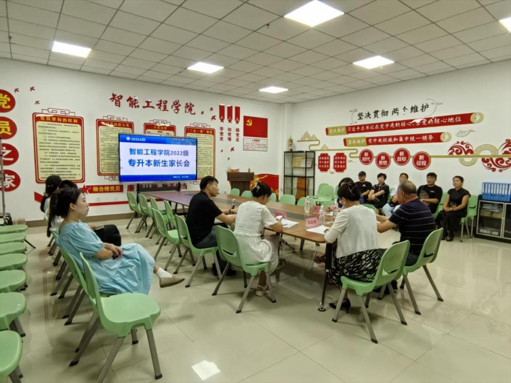 为提高家校间的密切联系,更好地促进学院与家长之间交流和沟通,帮助学生和家长更好地了解、适应学校、解答家长存在的问题,智能工程学院于2024年8月17日下午在第一教学楼414 会议室召开2024专升本家长见面会,会议由智能工程学院副院长韩蓉主持,院长王俊发、党总支书记吴东爽、副院长陈泮洁、专升本新生辅导员李阳出席会议,2024年入学的专升本学生家长线上线下共同参加会议。