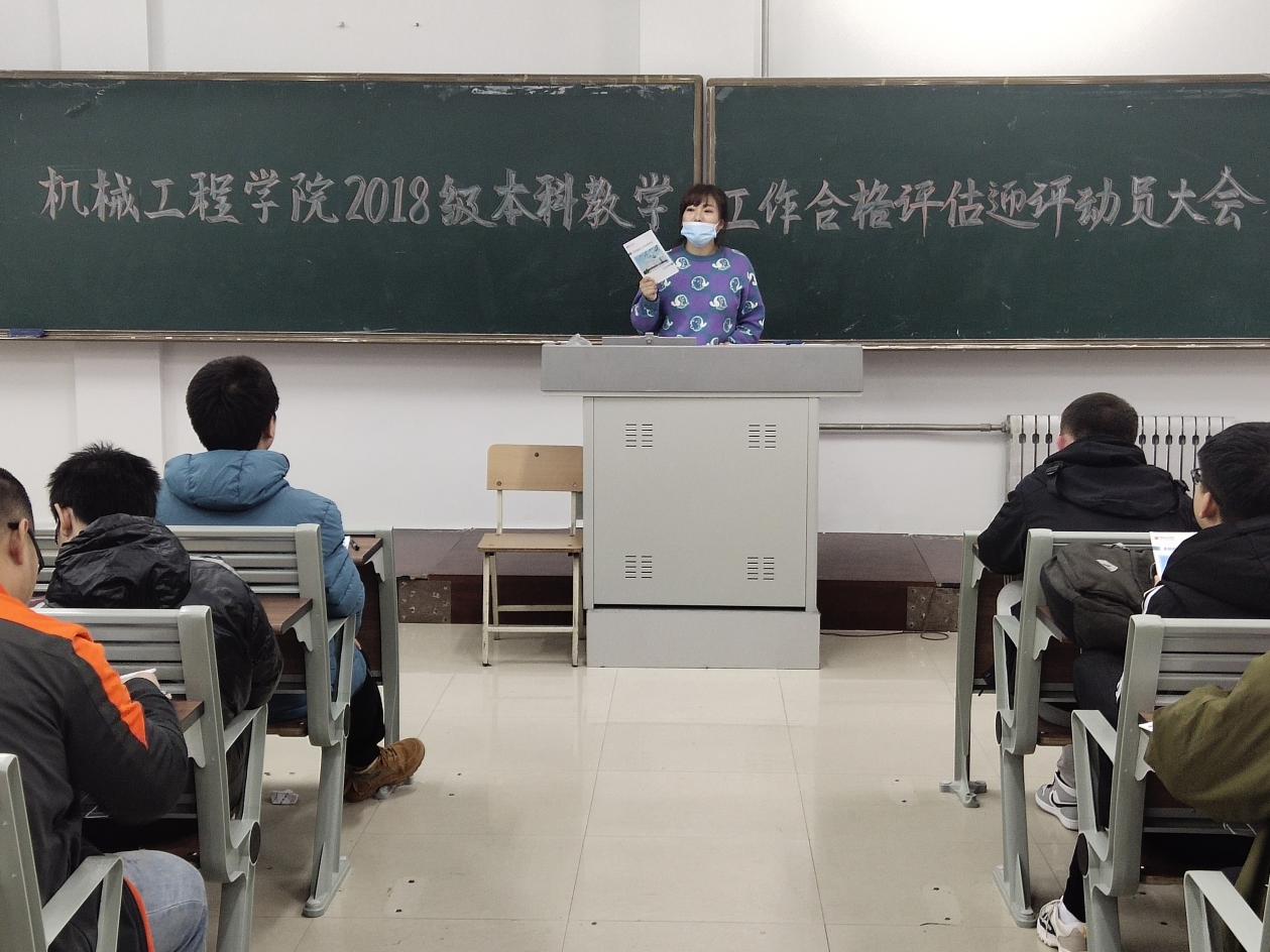 为推进我院本科教学合格评估进程,动员我院学子以更新的精神风貌、更高的学习热情、更强的使命感和责任感投入到迎评工作,2020年10月16日下午机械工程学院于主教301、304教室开展2018级本科教学工作合格评估迎评动员大会。机械工程学院2018级辅导员吕博萱、机械工程学院2018级辅导员张丽莉及机械工程学院全体2018级学生参加会议。