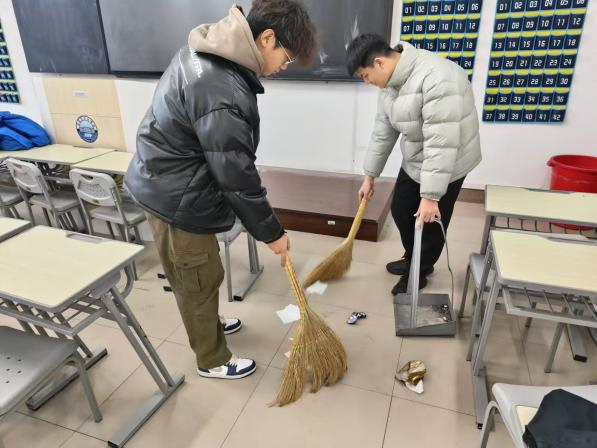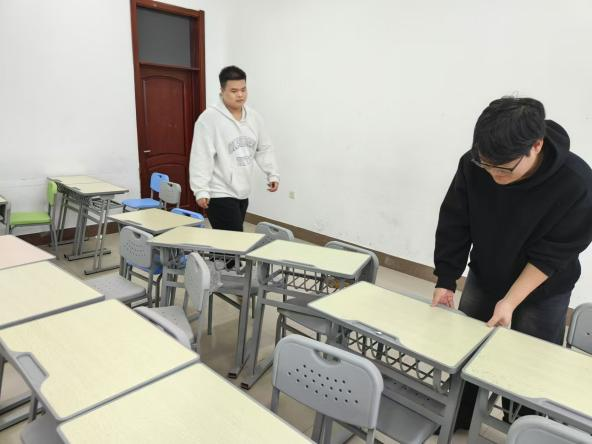 在活动期间,同学们以小组为单位,分工明确,负责摆放桌子、擦拭黑板、清扫和拖地等工作。在整个劳动过程中,同学们秉持着“团结互助,爱校如家”的理念,共同努力营造了一个整洁舒适的学术氛围。这不仅展现了智能工程学院同学们出色的劳动技能,也彰显了他们团结协作的精神风貌。