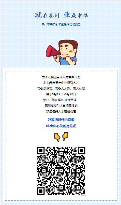 “就在泰州 业成幸福”丨泰州市高校引才直播周活动预告