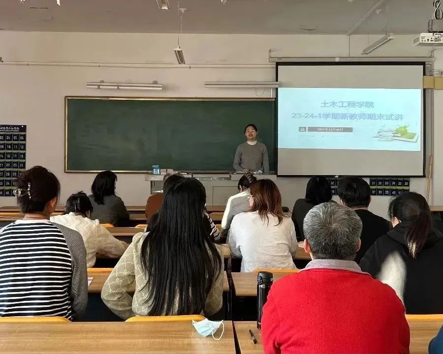 为进一步提升新教师的专业素养和教学能力,夯实教师驾驭课堂教学的基本功,引导新教师更快更好站稳讲台,土木工程学院于2023年12月26日下午,组织开展新入职教师学期末试讲活动。此次活动,由副院长荆明野主持,盖晓连院长、张佰真铭副院长及主任教授担任评委,共有7名2021年后入职新教师参与试讲,学院全体教师参与观摩学习。