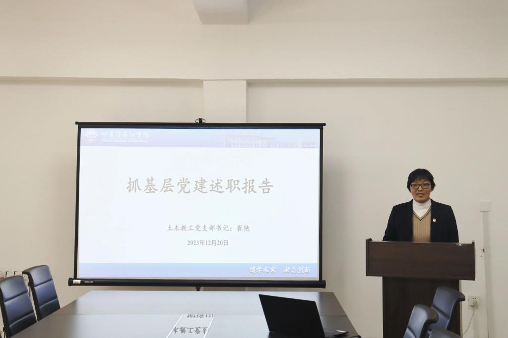 为检验各支部党建工作成效,推动学院基层党建工作取得新突破,根据校党委组织部《万博max官网2023年度党组织书记抓基层党建述职评议考核工作实施方案》要求,12月20日中午,土木工程学院党总支召开2023年度党组织书记抓基层党建述职评议会。学院党总支书记宋旭、副书记盖晓连以及党总支委员参加了会议。会议由宋旭书记主持。