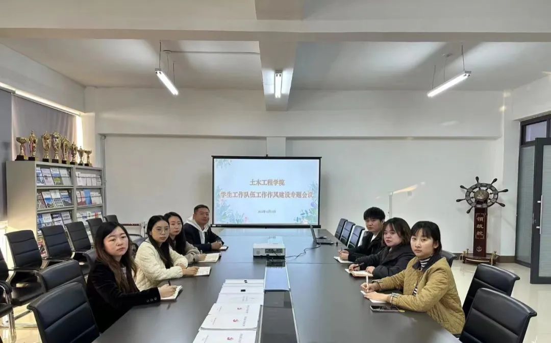 为积极推进学院学生工作作风建设,强化学生管理,密切联系师生,切实增强学生工作队伍的创造力、凝聚力和战斗力,促进学生工作健康可持续发展,提升育人质量,2023年12月13日上午,土木工程学院召开学生工作队伍工作作风专题会议。学院党总支书记宋旭主持会议,全体辅导员老师参加会议。