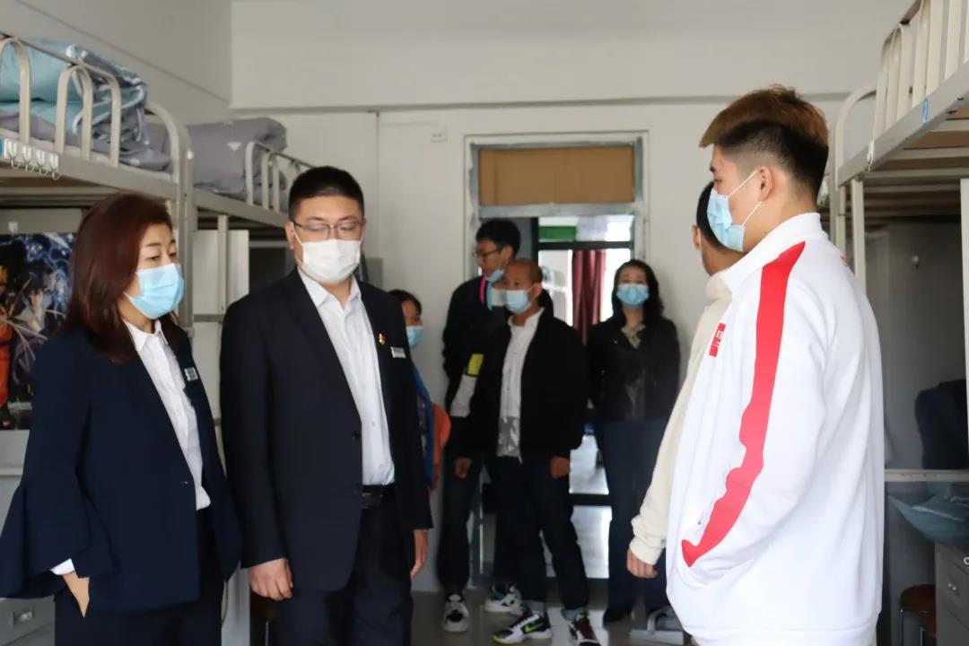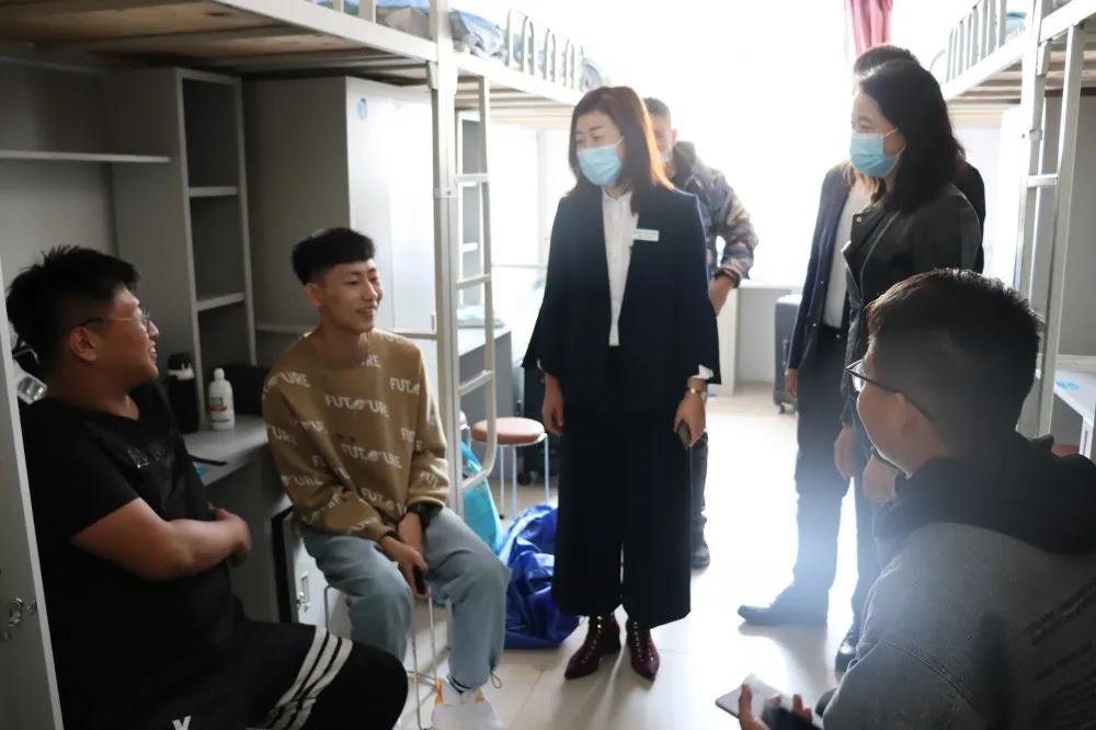 学院领导与新同学们亲切交谈,了解同学们的家庭、学习情况,以及入学过程中是否遇到困难,对大学生活的期望和规划。盖晓连院长表示,新同学们告别家人,离开熟悉的家乡来到陌生的环境,难免会有些不知所措和思念家人,希望同学能尽快适应新环境,把握大学时光和机遇,珍惜舍友缘分和情谊,在新的环境里多方面提升自己。树立学习目标,立志成才。宋旭书记也鼓励同学们以接下来的军训和入学教育为契机,养成良好的生活习惯,注意休息,养足精神,以良好的精神面貌面对接下来的每一天。同时,学院领导叮嘱每一位同学,目前疫情防控工作仍然不可忽视,不要放松警惕,要积极配合学校疫情防控措施,提高防护意识,做好个人防护。