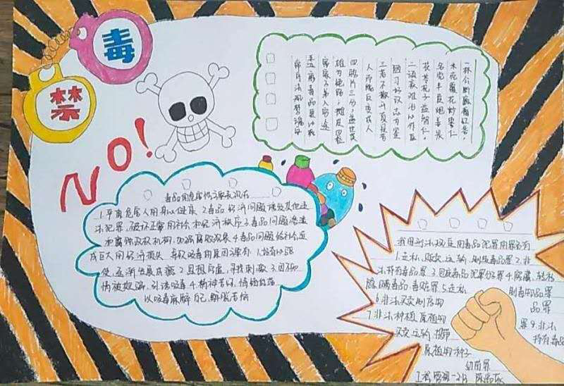 通过这次禁毒为主题的手抄报大赛,不仅提高同学们的安全防范意识、增强对心理健康与和谐的重视,还为同学们提供了一个展示个性设计艺术才华的平台,相信同学们更加坚定禁毒防范意识。如今,战“疫”的硝烟还未散去,禁毒的脚步依然铿锵,毒品一日不绝,禁毒一日不止,让我们珍爱生命,远离毒品!
