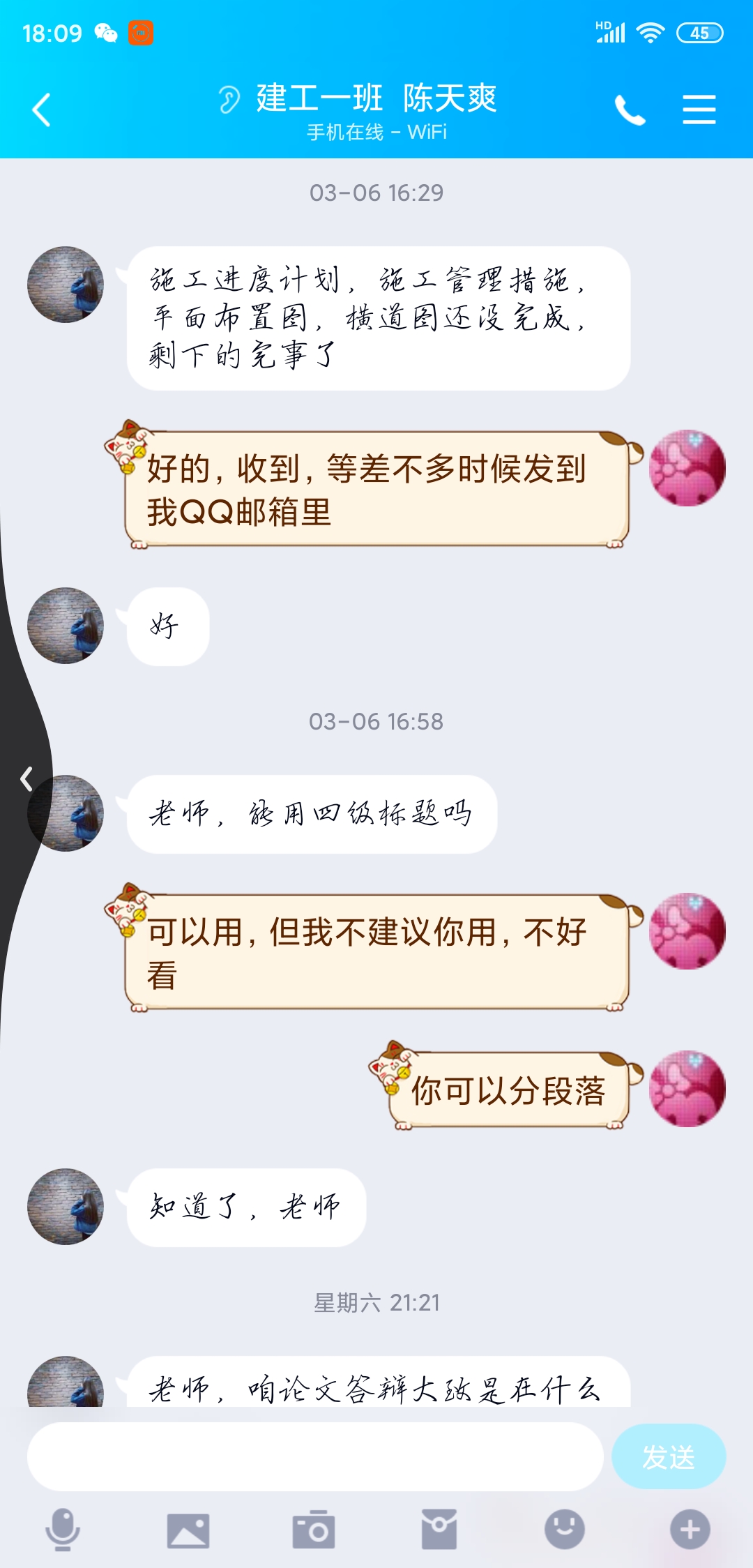 土木工程专业(建工方向):在保证教学质量的前提下,我们认真负责带领学生开展毕业设计工作。自3月2日开学以来充分利用各种网络平台对毕业生进行远程指导,多次召开线上会议,增加与学生的沟通。分别与学生建立微信群,QQ群,钉钉群等,首先让学生了解关于毕业设计的内容和要求,并在群里发布了参考资料。包括毕业论文任务书,毕业论文指导书,毕业论文撰写规范等传至QQ群,同学们进行查看,其次每周利用钉钉视频进行集中讲解,共同讨论。每周指导内容严格按照毕业设计任务书中的进度进行指导。提醒学生注意时间节点,按时完成指导教师布置的任务,并且在线解答学生提出的疑问。同时各指导教师按时统计学生的毕业设计进度,对进度严重拖后的同学勤加督促。学生在设计过程中,若遇到问题随时用微信联系指导教师。为确保毕业设计的进度,要求每位学生把一周的工作内容传至微信群。每周在钉钉群指导教师对学生的提交的工作量进行点评,确保学生能够按时完成毕业论文的编写,保证毕业设计指导工作有条不紊的进行。