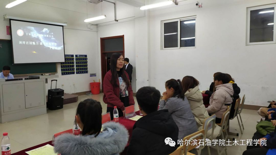 为了更好地推动社团的自身建设,加强社内交流,丰富校园文化生活,土木工程学院社团联合会于11月26日下午5:00主教610顺利举办了以“演绎社团魅力,谱写青春华章”为主题的社联团活活动。土木工程学院学团办公室主任赵宇以及19级辅导员王雪担任了本次活动的嘉宾。