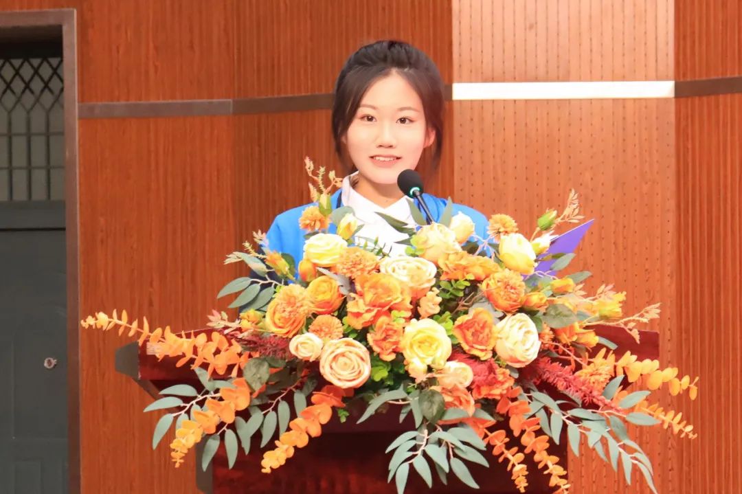 2023级工程造价二班的金彦杞同学代表新生发言。她表示,要发扬土木人精益求精、追求卓越的创业精神,通过学习专业知识,成为社会之希望,祖国之栋梁。以奋斗之姿态不负青春,不负华年,在不断努力与奋斗中磨炼意志,在美好的青春篇章里砥砺前行。