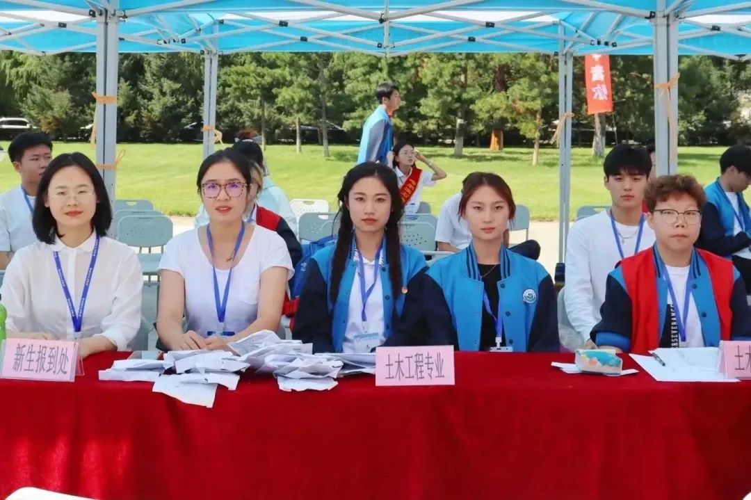 土木工程学院2023级的萌新们在学院迎新接待处留下了珍贵的入学纪念。