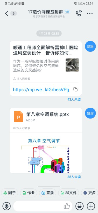 基本情况:《建筑设备》是造价专业基础必修课程,课程培养目标是使从事建筑施工与管理工作的学生具有建筑给水与排水、供热、通风与空气调节、消防等设备工程的专业基本知识,以及掌握这些基本知识和技术所必备的基本理论,已解决建筑施工、管理及监理工作中与建筑设备专业很好协调配合的问题。3月2日开课以来,通过钉钉+学习通平台网上授课,每周3课时,应到课82人数,实到课82人数,到课率100%,教学运行平稳。在线教学更要做到精析教材,精工教案,精设课件,精密流程,精巧互动,精炼用语,精批作业,精于反思。