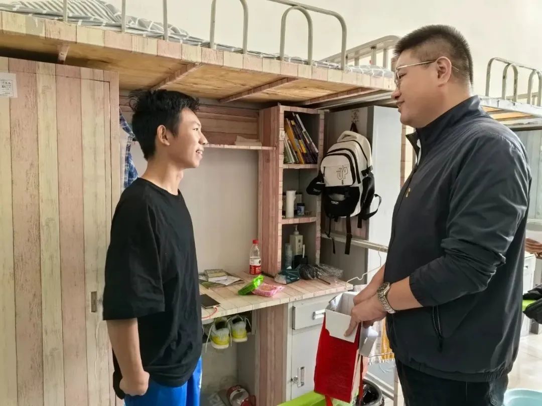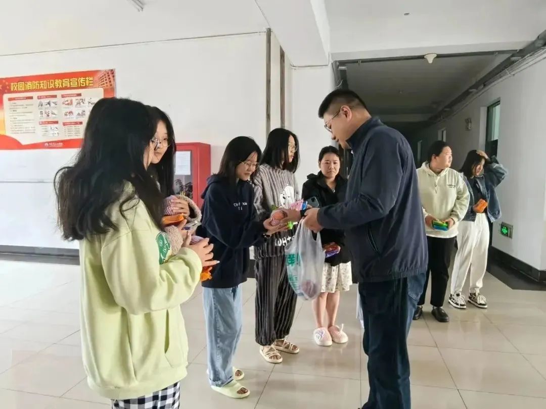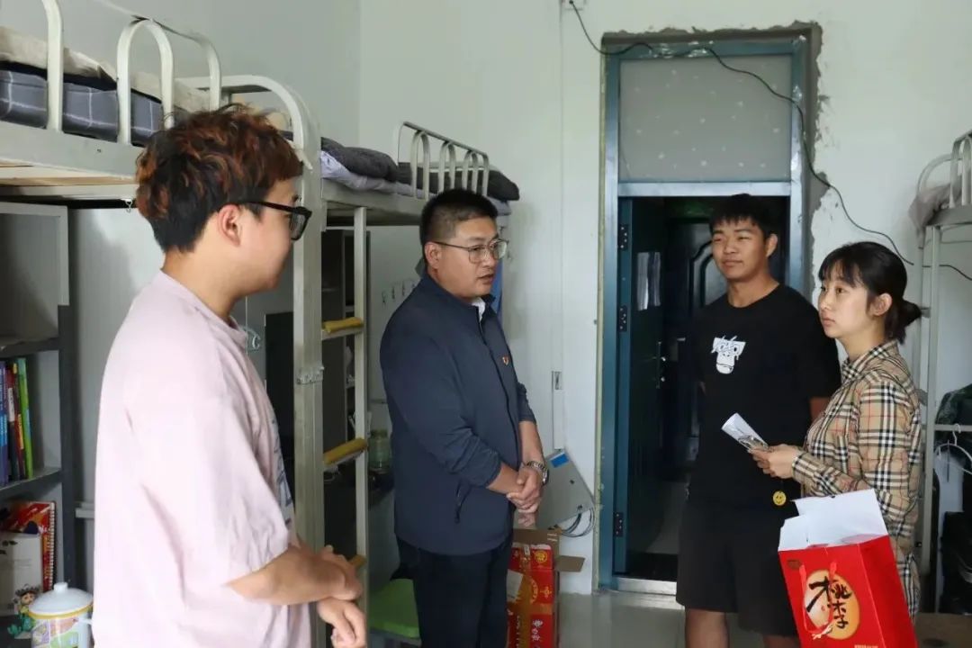 会后,宋旭书记和管艺濛老师来到的学生宿舍,看望了节日假期留校的同学们,并为同学们送去了节日的祝福和慰问品。向学生强调了假期出行安全、寝室安全用电、谨防电信诈骗等注意事项,希望大家能度过一个平安、健康、幸福的中秋节。大家纷纷表示,领导和老师们的关心让他们感受到了家的温暖,一定牢记学校和老师们的嘱托,在今后的学习生活中严格要求自己,努力实现人生理想。