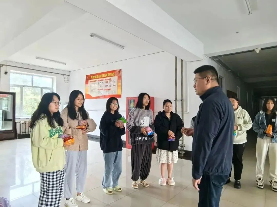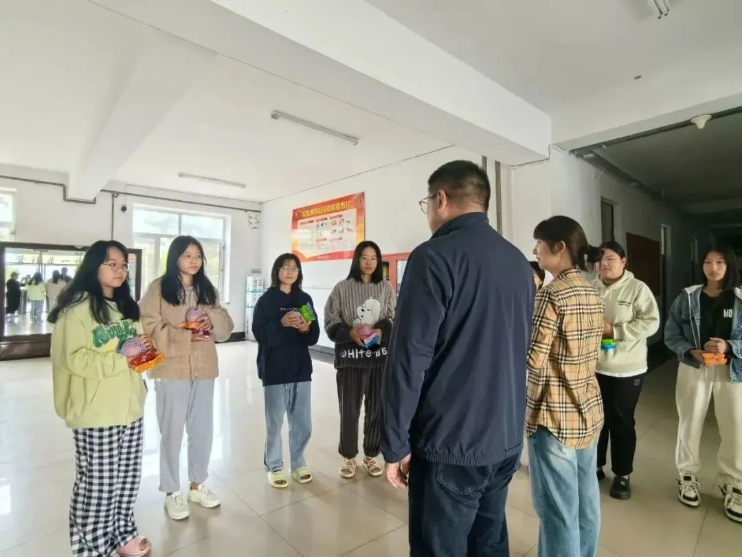 丹桂飘香,浓情万里。为使假期留校不能与家人团聚的新同学感受到来自学院的温暖和关心,2023年9月29日上午,在中秋佳节来临之际,土木工程学院党总支书记宋旭、2023级辅导员管艺濛,与留校学生代表开展座谈会,并走进学生公寓慰问在校学生,为同学们送上暖心礼物和节日祝福,让学生倍感温暖。
