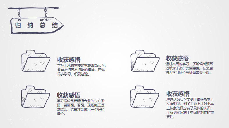 通过本次认识实习,将理论与实践相结合,开阔了学生的视野,激发了学生对后续开设的专业课程的求知欲,使学生对工程造价专业有了更直观、更清晰、更全面的认知,增强了身为土木人的使命感和责任感。时间虽短,但成效颇丰,学生掌握了更多的专业知识,增强了学习后续课程的自信心,明确了未来的发展方向,达到了认识实习的目的。