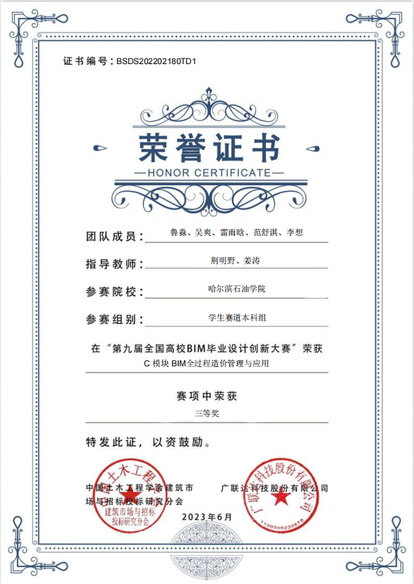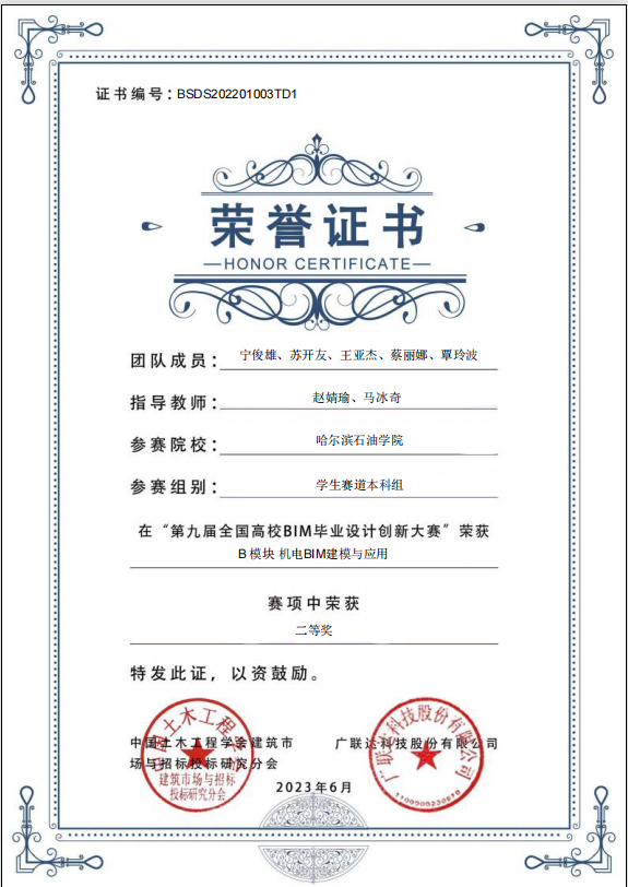 近日,第九届全国高校BIM毕业设计创新大赛落下帷幕。经过激烈角逐,万博官网土木工程学院院长盖晓连、院长助理荆明野、建环系主任赵婧瑜老师率队指导的3支队伍在全国580余所院校组成的5600余支参赛团队中脱颖而出。经过近五个月的备赛,克服重重困难,分别荣获E模块BIM建设工程项目管理应用全国三等奖、C模块BIM全过程造价管理与应用全国三等奖及B模块机电BIM建模及应用全国二等奖。