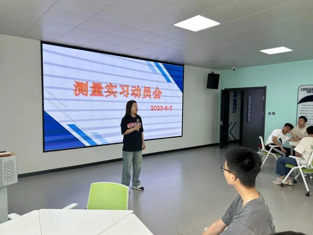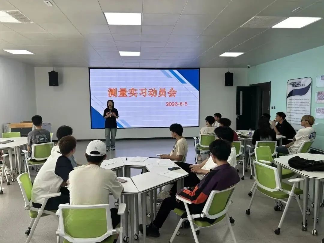 实习的第一天,指导教师对全体测量实习的学生开了动员会,动员会上,贾志强老师强调了这次测量实习的重要性,同时布置这两周测量的工作任务及测量时的一些相关注意事项,盖晓连院长再次强调了这次测量实习是一次非常难得的实践机会,希望大家利用好这两周的实践,真正提高自己的测量实践操作能力。