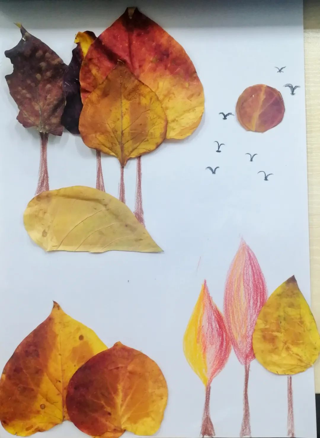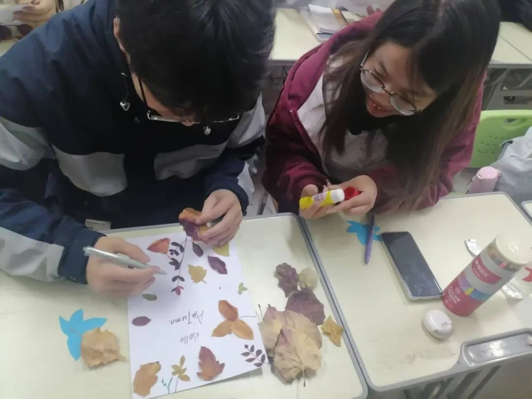 活动当天,秋意正浓,一片片枫叶如同火红的希望,在微风中摇曳。同学们纷纷走出教室,来到校园内的各个角落,收集形状各异、色彩斑斓的落叶。活动中,同学们以小组为单位展开创作。有的小组利用落叶拼贴成一幅幅生动的秋日风景画,有的则通过落叶编织成各种造型独特的手工艺品。每一件作品都凝聚了同学们的智慧和汗水,展现了他们对秋天的独特理解和创意表达。