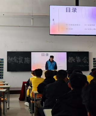 报告会上,11位入围优秀社会实践的同学们分别就各自的社会实践项目进行了精彩的汇报。期间通过PPT展示,不仅详细阐述了实践活动的目的、过程、成果,还向大家分享了在实践中的心得体会,充分展现了当代大学生投身社会,努力奋斗的昂扬精神状态。