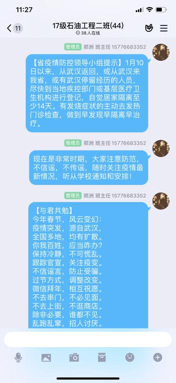国家正处于防疫工作的关键时期,石油工程学院全体教师不忘初心,坚守教学岗位,确保各项工作的顺利进行,稳保教学质量,为抗击疫情奉献自己的力量。