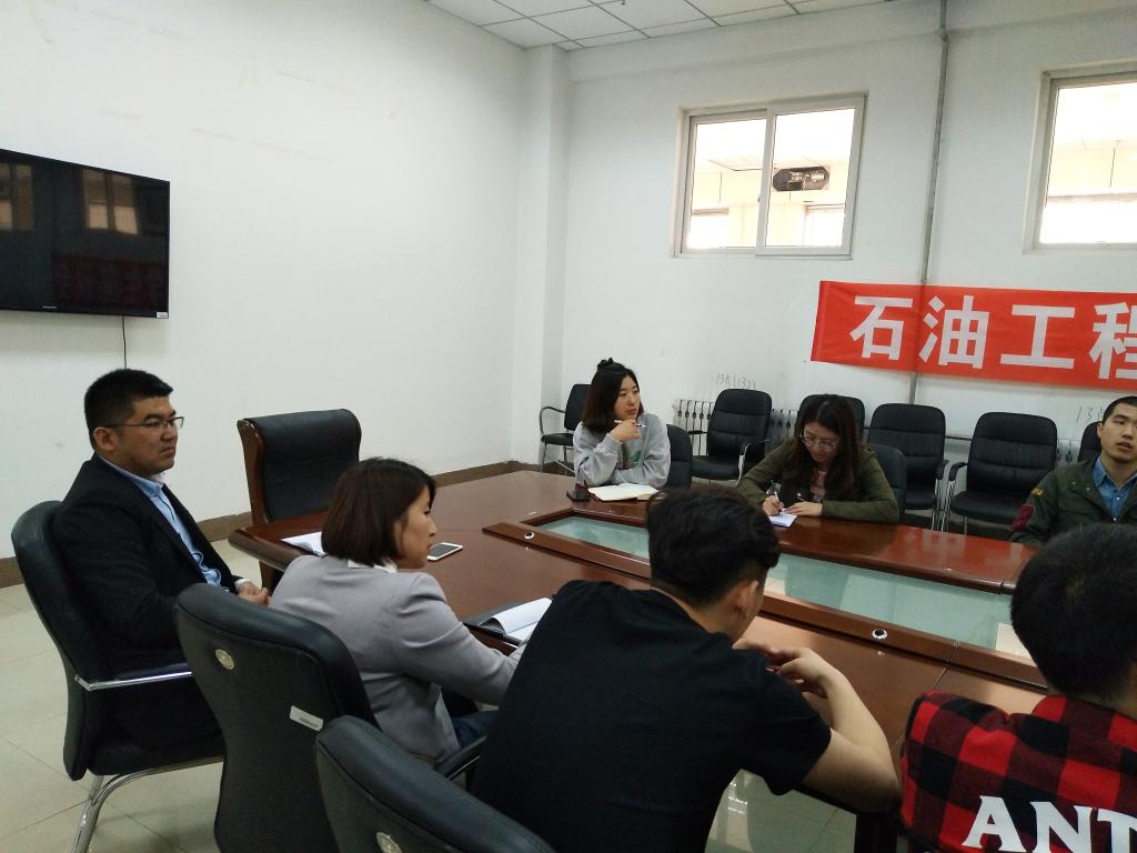 为迎接万博官网2019年本科教育合格评估,本着“一切以学生为中心,以评促建谋发展”的思想,积极提高学生服务质量,我院于5月4日在主教416会议室召开了期中教学检查学生座谈会。副院长李岳祥、郑洲、石油工程系主任张国芳、办公室主任赵昕参加了会议。2015-2017级学生代表出席了本次座谈会。