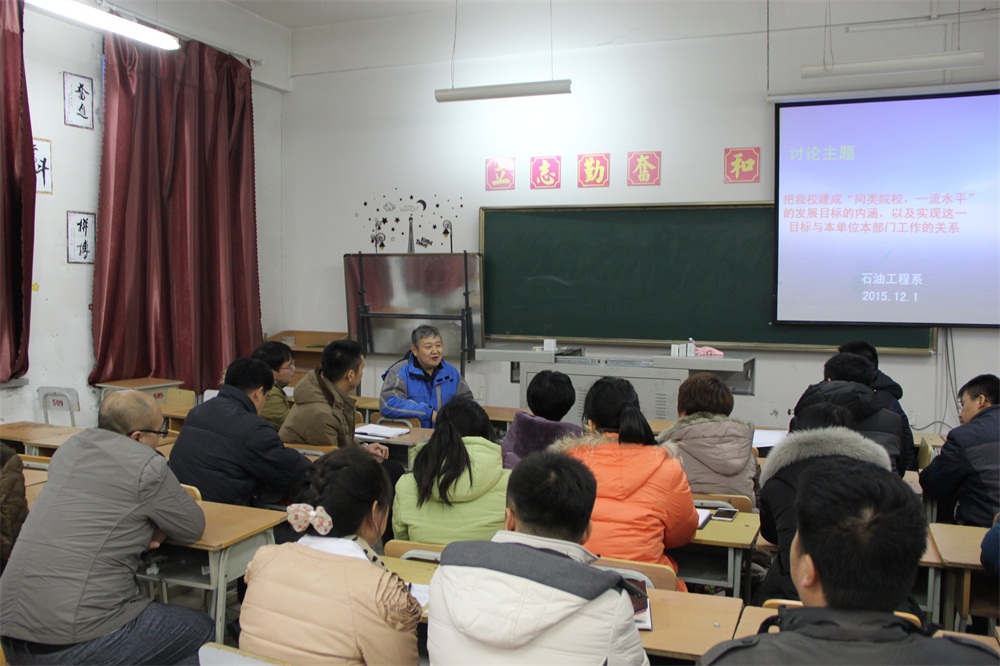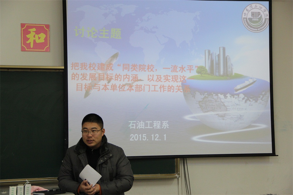 会上,学习讨论气氛热烈,同志们踊跃发言,分别从自身的角度出发,结合我系学习讨论的整体方案,畅谈了自己在教学当中存在的不足与问题,努力查摆当前教育教学工作与现代高等教育理念存在的差距与不足,并且提出了一些解决的思路和方法。李岳祥老师作为教师代表进行了大会发言,对将我院建设成为“同类院校一流水平”的发展目标提出了自己的想法和观点,并且从课堂管理、授课形式、教学改革等角度与在座的同志们分享了自己的心得和体会。