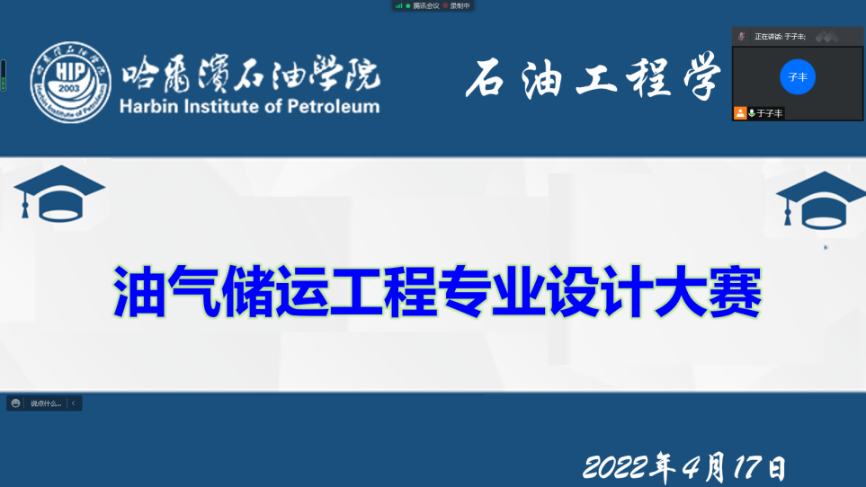 比赛正式开始之前,系主任于子丰老师介绍了参加油气储运设计大赛对提升学生专业素养的重要性,并代表油气储运系对本次参赛学生进行了鼓励。全国大学生油气储运工程设计大赛是由中国石油学会、中国石油教育学会主办,中国石油大学(华东)承办的面向全国大学生的油气储运学科专业性大赛。比赛综合考量了学生对油气储运专业基础知识掌握情况、专业实践技能和创新思维,对于油气储运专业学生是非常难得的锻炼机会。此次活动既拓展了学生的专业视野,也提高了学生的综合学术水平。在疫情期间参与比赛,也会让学生充分意识到团队合作的重要性,团队齐力协作,才能创造出更大的奇迹,希望每一位同学都有所收获。
