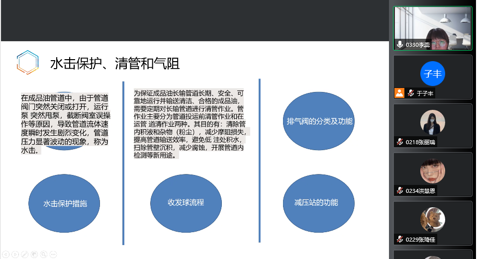 汇报会由油气储运系张嘉琦老师主持,在张老师介绍汇报流程及比赛要求后,各小组按照抽签顺序依次进行了作品展示,汇报时间为15分钟。