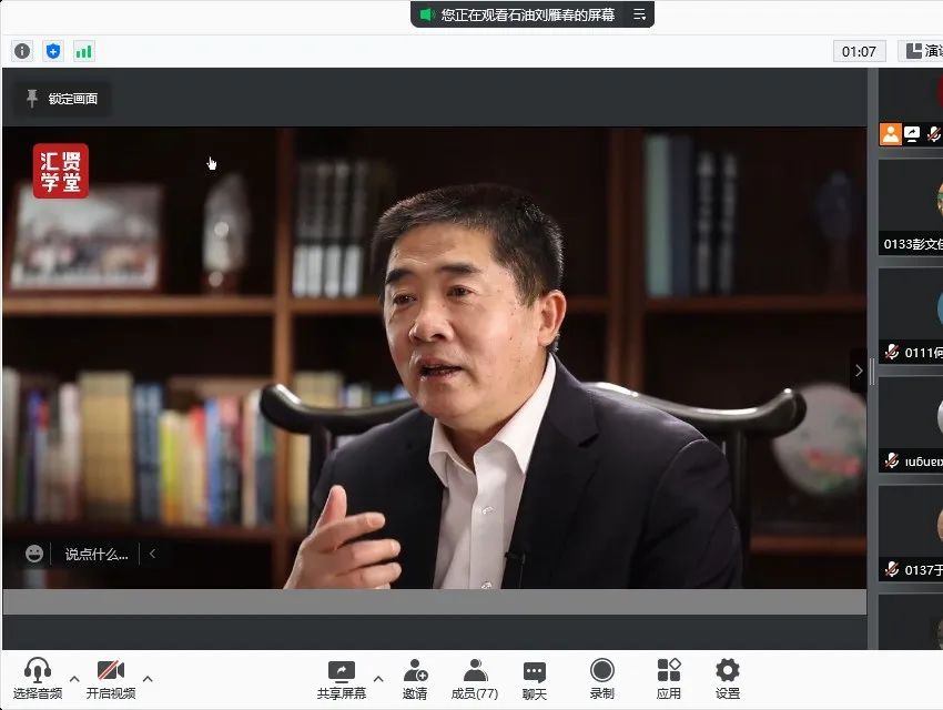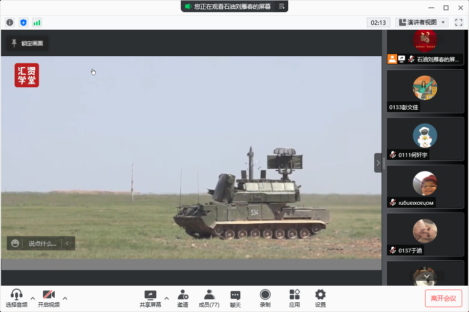 本次讲座由杜文龙老师主讲,讲座上杜老师以国防安全中的多种实例展开叙述,并结合当下世界局势为大家上了一场生动的国防安全教育课。杜老师通过分析实际案例向学生讲解了国家安全包括国家的主权、领土完整不受侵犯、国家的秘密不被窃取、泄露和出卖,秩序不被破坏等观念。同时讲座中,杜老师向我们提出了“维护国家安全,你会怎么做?”这个问题并进行线上讨论,学生们纷纷表示要从现在做起,从自己做起,自觉抵制危害国家安全的言论、行为,认真学习体会国家安全知识,为铸造国家安全的铜墙铁壁贡献自己的力量。