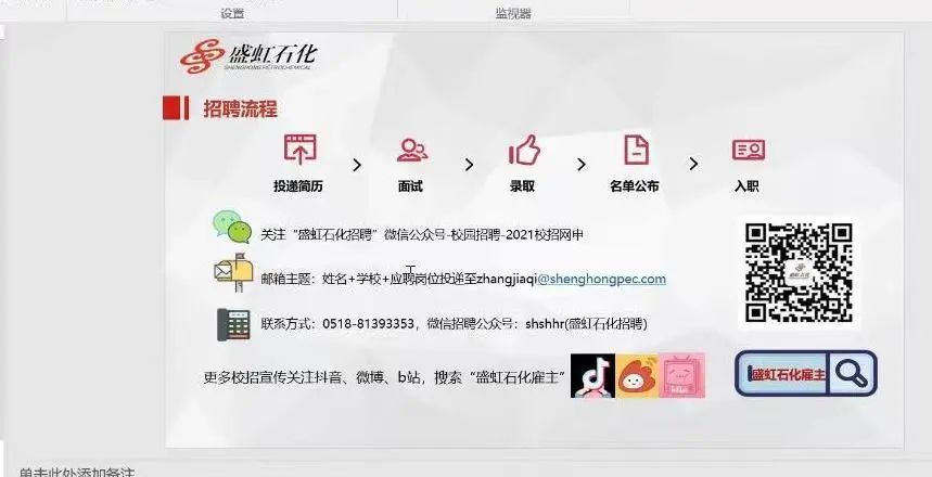 为了更好地拓宽毕业生就业渠道,增加学生对企业的了解。4月7日,盛虹石化集团有限公司在腾讯会议召开了线上招聘会,我院19级全体学生参会。