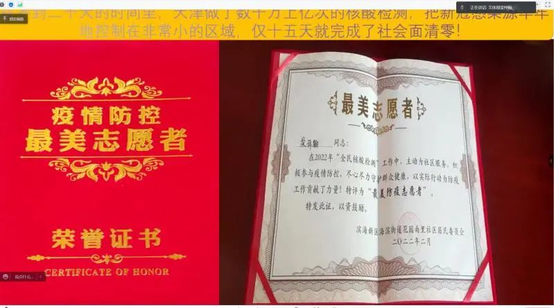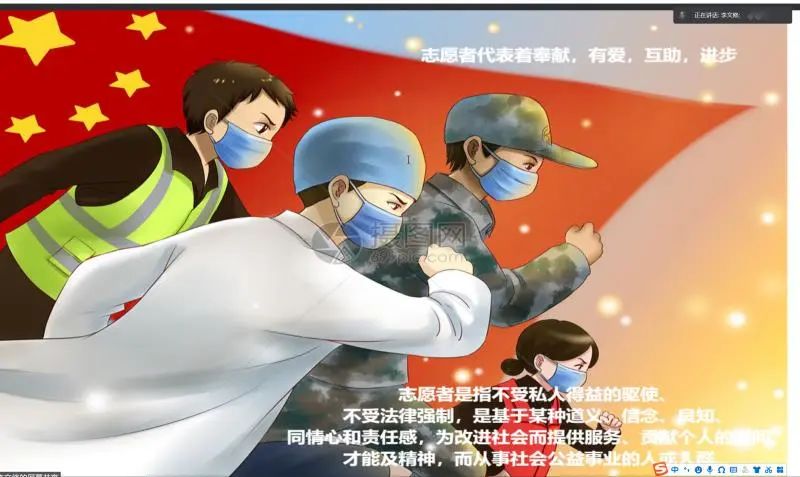 活动伊始,各位同学通过自己制作的ppt向大家分享了假期担任志愿者期间的经历,分享在抗疫一线的心得,进一步增强了同学们乐于助人,服务社会的精神。志愿服务活动是倡导团结友爱,助人为乐的社会风气,是当代社会主义的一项高尚的事业。体现了中华民族的传统美德,有利于全社会树立奉献、友爱、互助、进步的时代新风范。