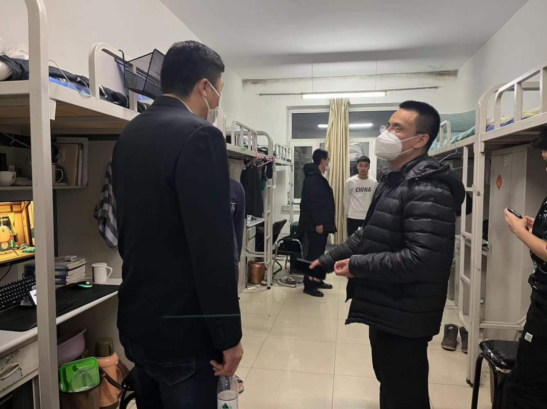 校领导深入宿舍,走访中详细了解了学生在校学习生活情况,交流中,同学们纷纷表示,学校是个温暖的家,遇到困难一定随时向学校寻求帮助。合理使用诉求渠道等。领导强调,要严格遵守学校疫情防控管理规定,科学佩戴口罩,保持社交安全距离;不外出、不聚集、不串门、不聚餐,共同建设平安校园。勉励同学们要珍惜美好的青春时光,扎实学好专业本领,积极拓展知识面,努力提高综合素养。同时观看了大三网上招聘会,对马上面临“3+1”的同学提出,遇到问题和困难时积极沟通,主动寻求学校学院的帮助。