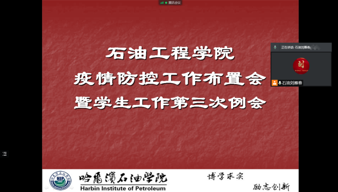 为了更好的防控疫情,做好在校学生的工作。3月14日晚,石油工程学院召开第三次学工例会。副书记&2020级辅导员张雪、2018级辅导员贾延迪、2019级辅导员郭海明、2021级辅导员王娜参加会议。会议由党总支书记刘雁春主持。