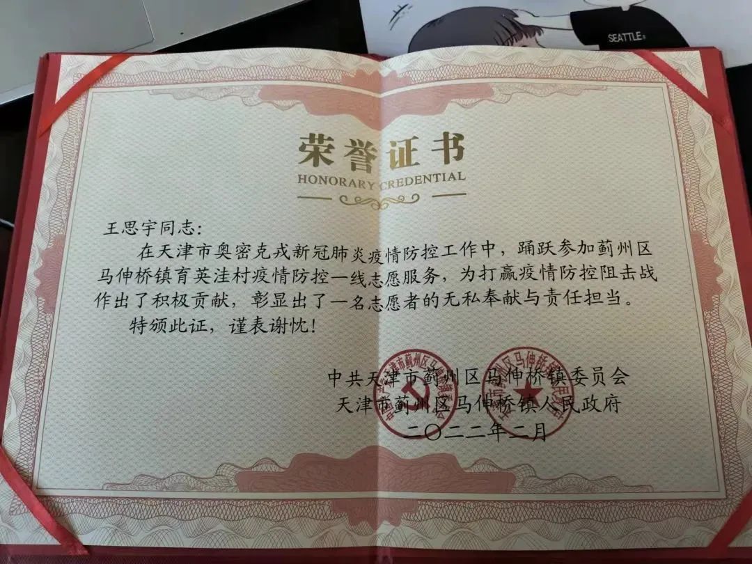 在疫情防控工作中,王思宇同学积极响应号召,承担起了小区核酸检测的组织服务工作。她主要负责维持队伍秩序、录入身份信息、安抚群众情绪等工作,使核酸检测等工作平稳有序进行。防疫过程中,她的无私奉献和责任担当深受群众和工作人员的喜爱,为防疫工作做出积极贡献。