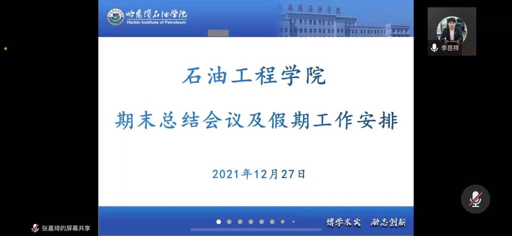 12月27日,我院于腾讯会议线上召开期末工作总结及假期工作安排会议,院长李岳祥、党总支书记刘雁春及学院全体教师参加此次会议。