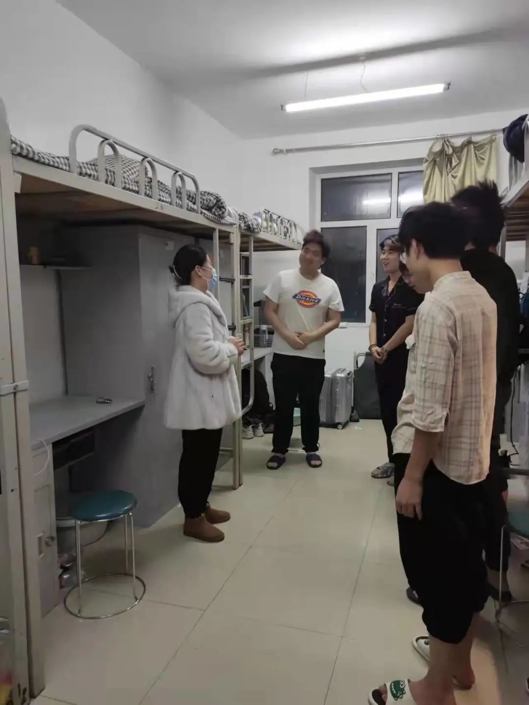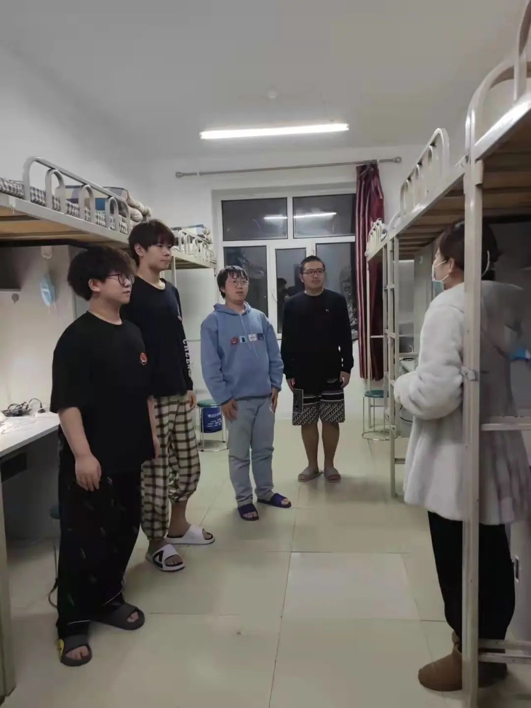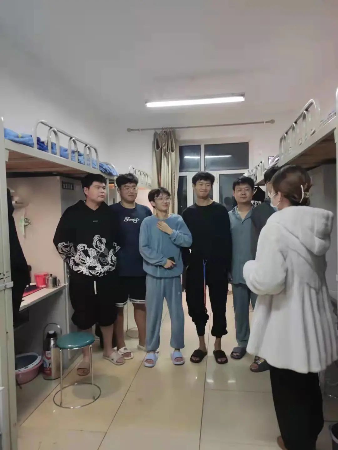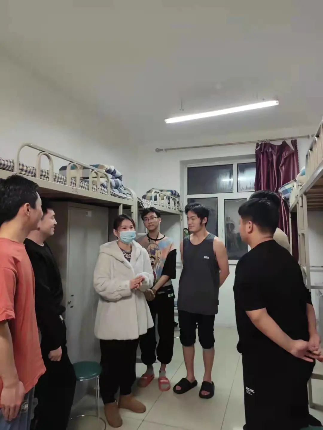 同时,在这特殊时期,王老师也带去了学院的嘱托和问候,希望大家能注意自己的身体和心理的健康问题,调节好自身情绪,希望宿舍成员之间做到互相帮助、互相理解,及时关注疫情消息,不要因封闭管理期间产生焦虑,紧张的情绪。