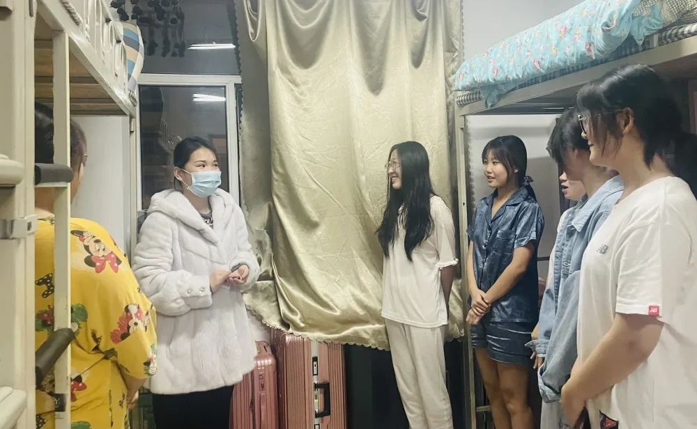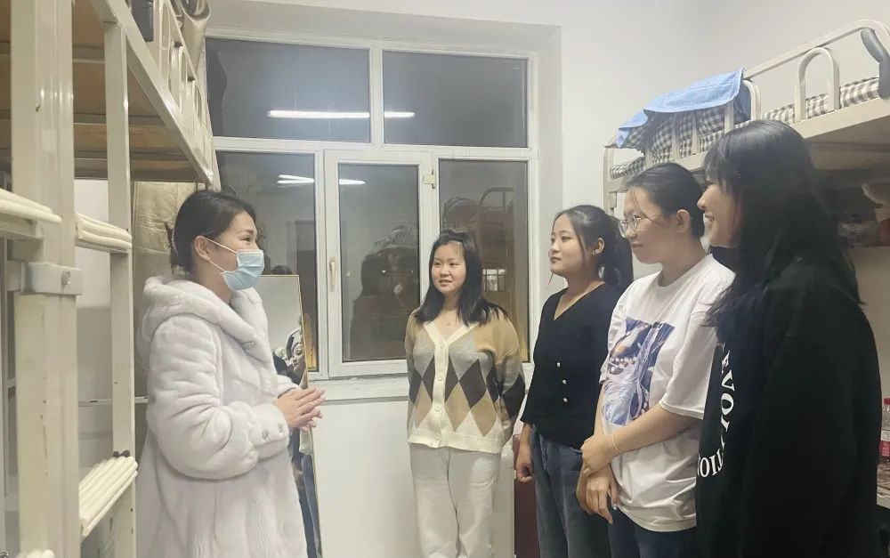 在走访过程中,王娜老师深入宿舍与每一位同学都一一进行亲切的交谈,询问大家,在大一入学以来的学期,生活是否适应情况,尤其是期末的食堂供应情况,饭菜是否符合胃口。王老师在走访过程中,安抚同学们焦急回家的心情,告诉大家耐心等待。