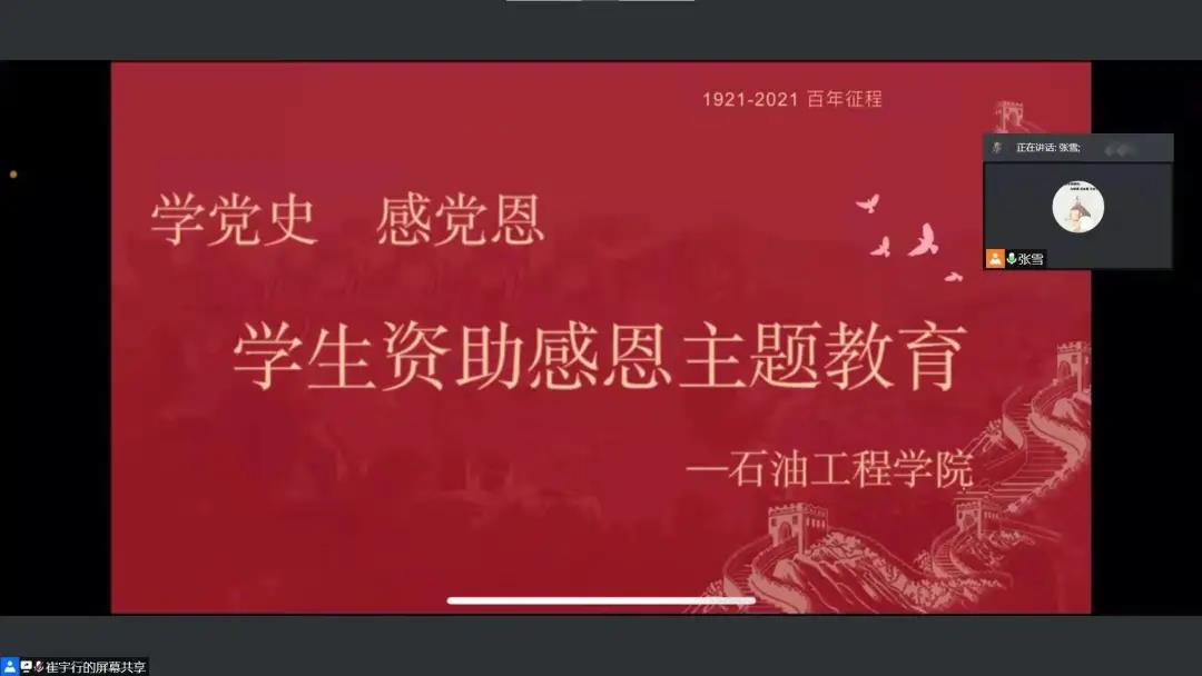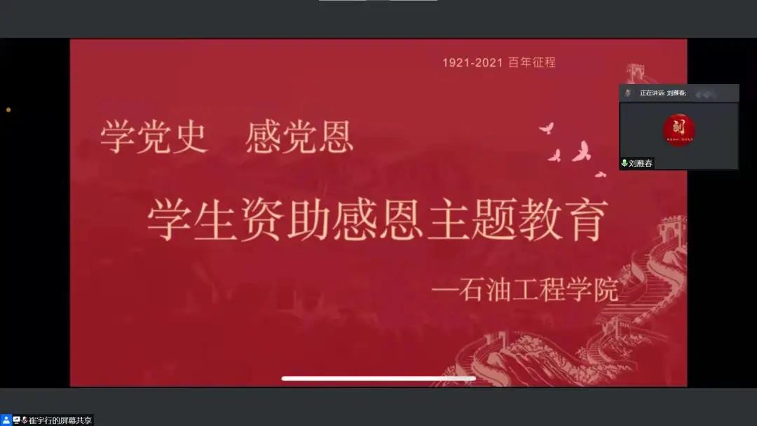 为深入学习贯彻党的十九届六中全会精神和习近平新时代中国特色社会主义思想,落实立德树人的根本任务,全面宣传党和国家的学生资助政策,确保有关扶贫资助政策落实到位,充分发挥学生资助工作的育人功能,增强巩固学生的感恩意识、责任意识和报国意识,12月9日,我院于腾讯会议线上召开“学党史,感党恩”学生资助感恩主题会议,党总支书记刘雁春及受国家励志奖学金资助学生参加本次会议,会议由党总支副书记张雪主持。