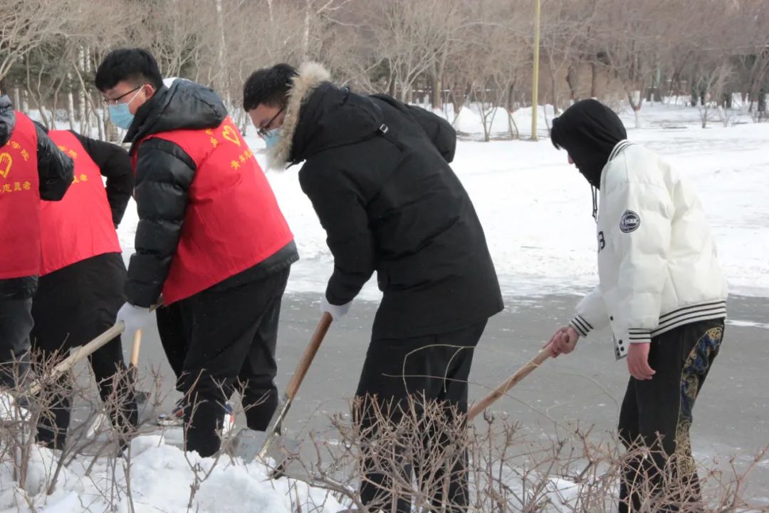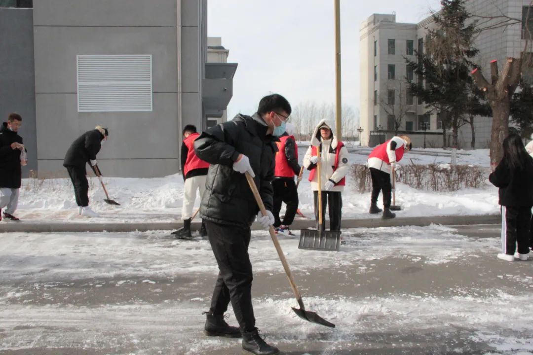 在本次活动中,志愿者们表现积极,在扫雪过程中分工合作、齐心协力,充分阐释了“团结、友爱、互助、奉献”的志愿服务精神。“风雪无情人有情,除冰扫雪暖人心”,希望这份温暖如冬日的暖阳,传递给来往的每一位师生。