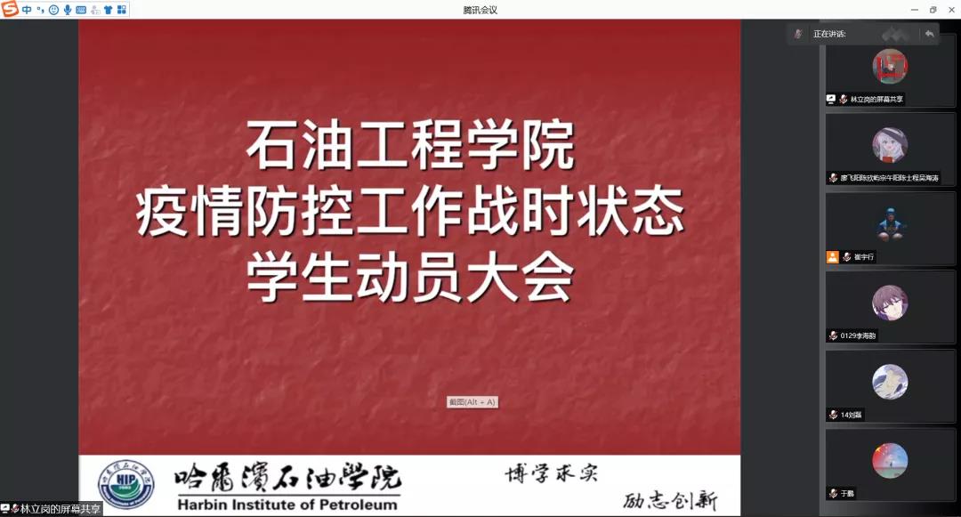 会议还强调以下几点:一、增强疫情防控的责任感,时刻紧绷思想之弦,积极开展好本院疫情防控,要求做到“非必要不出校、非必要不离哈”。二、加强个人防护,做到不传谣,不信谣,严格遵守官方政策及公告,不发布任何未经官方证实的虚假信息和言论,扎实做好疫情防控工作。三、凝“心”聚力,多点发力,筑牢抗“疫”心理防线。疫情防控期间,扎实推进落实疫情防控期间学生心理健康教育工作。学生可通过微信、电话联系辅导员,双方实现一对一谈话全覆盖,给予学生关怀与心理支持。