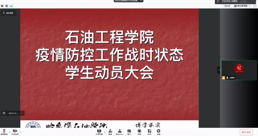 会上,刘书记传达了上级关于疫情防控工作的会议和文件精神,总结了我院疫情防控工作开展情况。并指出党的组织是党赖以存在发展、完成使命的基础,也是疫情防控的组织支撑。学院疫情防控工作要迅速进入“战时“紧急状态,全体师生员工要按照中央、省委和省教育厅的要求,高度重视疫情防控工作,充分认识本次哈尔滨市疫情的复杂性、长期性和艰巨性,坚决杜绝松懈、麻痹、厌战情绪。